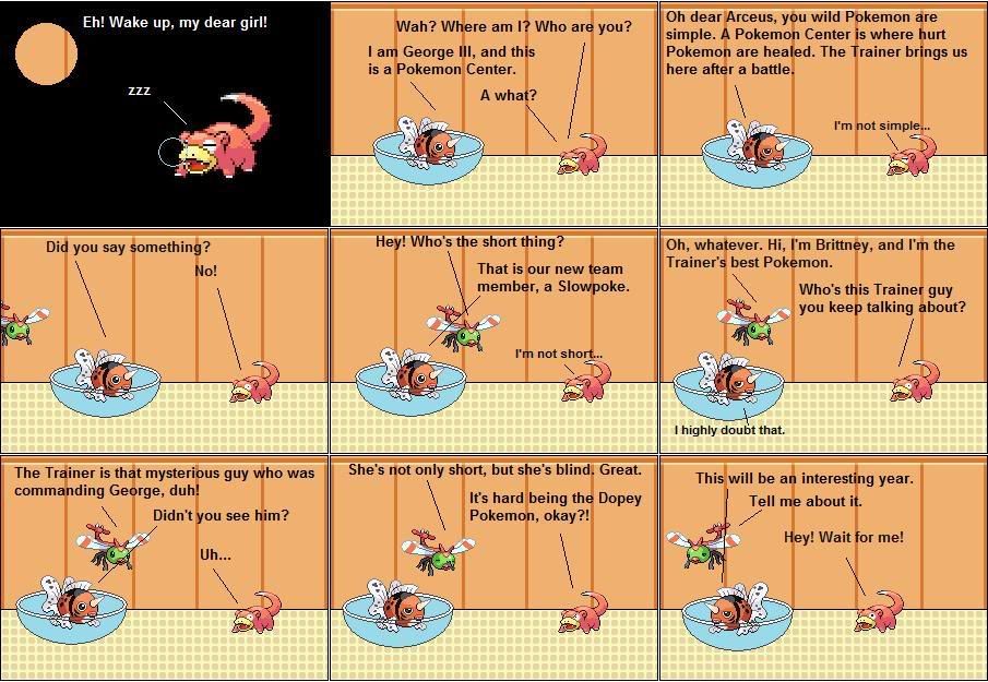 This sprite comic follows the lives a Trainer's battling team, as they train and capture new members. There are three main characters at the beginning, and it grows to six by the the fifth issue.