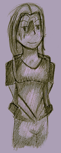 Again, largish size- random chick. I dunno, but I like her design. Another sketchbook drawing, the one on the right was colored with Photoshop 7.